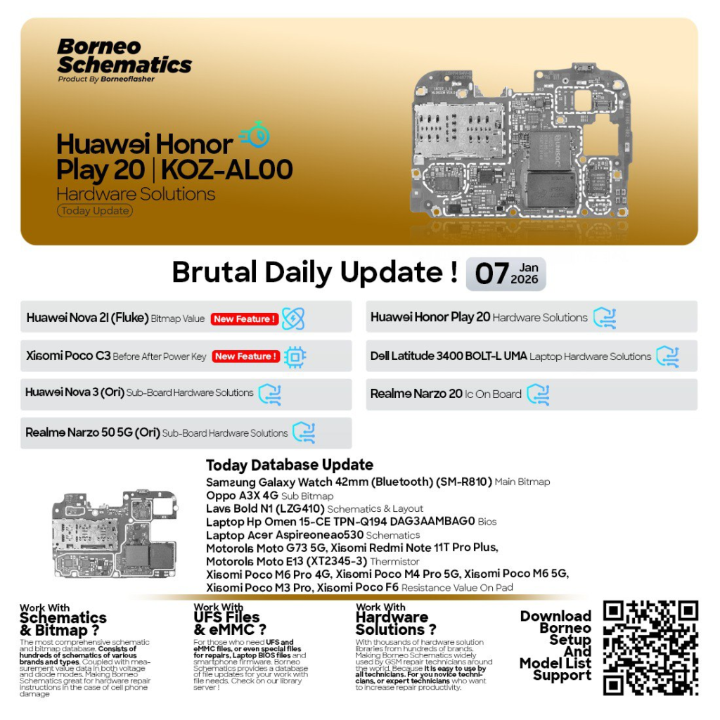 The Borneo Schematics Daily Update is one of the most trusted platforms for mobile and laptop hardware schematics, delivering daily updates for the latest smartphones, laptops, and electronic devices. With the Borneo Schematics Update 2026, users get access to newer models, refined hardware solutions, and faster diagnosis methods.
