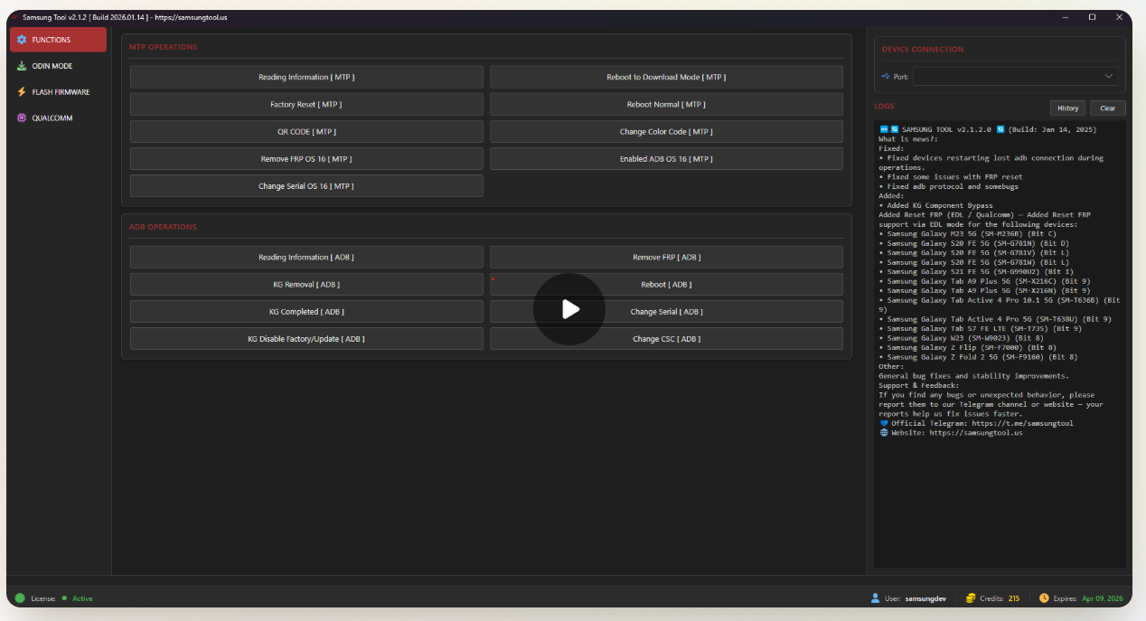 The tool uses official communication methods like Odin, MTP, and ADB.